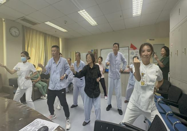 虽然我们对阿尔茨海默病的研究不断取得进步,但目前尚未取得有效的治疗措施,我们可以做的是通过、如读书、体育活动(八段锦)、积极社交这些有助于神经元活动。来帮助减缓症状的加重。在此次活动很重要的一个环节就是,由刘洁护士长带领护理团队在现场与患者共同打练健身气功八段锦。